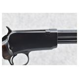 283R. Winchester – Mod. 1890 – 22 WRF Cal. Pump Action Rifle – w/24” Octagon Barrel w/Blade Front and Adjustable Rear Notch Sights – Blued and Brown Finish – w/Straight Grip Wood Stock and Ribbed Forearm w/Crescent Metal Butt Plate – w/¾ Length Tubular Magazine – Manufactured 1910