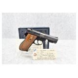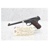 685R. Colt – Mod. Woodsman – 22LR Cal. Semi-Auto Pistol – w/4 ½” Barrel w/Blade Front & Adj. Rear Notch Sights – Blued Finish – w/Factory Detachable Magazine – w/Checkered Brown Plastic Grips