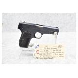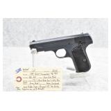 327R. Colt – Mod. 1903 Pocket Hammerless – 32 ACP Cal. Semi-Auto Pistol – w/3 ¾” Barrel w/Round Blade Front & Notch Rear Sights – Strong Blued Finish! – w/Factory Checkered Hard Rubber Grips w/Rampant Colt – w/Factory Two-Tone Magazine – Mfg. 1919 – Excellent Example