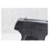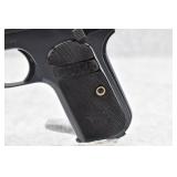 328R. Excellent! Colt – Mod. 1908 Pocket Hammerless – 380 ACP Cal. Semi-Auto Pistol – w/3 ¾” Barrel w/Round Blade Front & Notch Rear Sights – Strong Blued Finish! – w/Factory Checkered Hard Rubber Grips w/Rampant Colt – w/Factory Two-Tone Magazine – Mfg. 1923 – Excellent Example