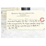 Redding Auction Service Inc. reserves the right to hold any or all merchandise purchased by personal check until the check has cleared the bank. If shipping is requested/required by the purchaser, all packing and UPS/USPS shipping charges will be paid prior to shipping.