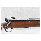 707R. Winchester – Mod. 70 Super Grade “Pre-64” “Pre-War” – 30 Gov’t ’06 Cal. Bolt Action Rifle – w/24” Barrel w/Hooded Front and Lyman Adjustable Rear Peep Sights – Blued Finish – w/Deluxe Checkered Wraparound Capped Pistol Grip Wood Stock w/Raised Cheek Rest and Butt Pad – w/Factory Super Grade Floor Plate – w/Griffin & Howe Mounts – w/Lyman Alaskan Scope – Manufactured 1938