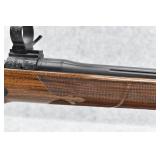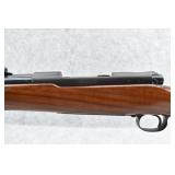 242R. Winchester – Mod. 70 Mannlicher No. (7003) – 270 Win. Cal. Bolt Action Rifle – w/19” Barrel w/Blade Front and Adjustable Rear Notch Sights – Blued Finish – w/Deluxe Checkered Pistol Grip Wood Stock w/Raised Cheek Rest and Factory Butt Pad – w/Sling Loops – Research Shows There were Only 2,401 of this Style Rifle Manufactured in the Late 1960’s, Only 593 were Manufactured in the 270 Win. Caliber – Manufactured 1969