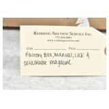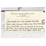 Redding Auction Service Inc. establishes no warranties or depictions concerning the fitness for use, safeness to fire, to store, or reliability of any firearm, ammunition, parts, parts of components of any lot. Any use is entirely at your risk. Redding Auction Service Inc. expressly disclaims any liability whatsoever for accident, injury or damage resulting to any person or property from the use or storage of any such lot.