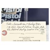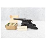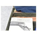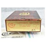 326R. Excellent! Colt – Mod. Woodsman 1st Series Target Model – 22 Long Rifle Cal. Semi-Auto Pistol – w/6 5/8” Barrel w/Adj. Blade Front & Adj. Notch Rear Sights – Blued Finish – w/Factory Checkered Wood Grips – w/Two-Tone Magazine – w/Matching Serial Number Box, “Shooting Suggestions” Manual & Factory Serial Numbered Test Target! – Mfg. 1941 – Great Find!!