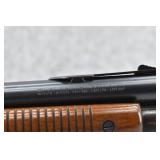 296R. Winchester – Mod. 61 Grooved Receiver – 22 Cal. Pump Action Rifle – w/24” Barrel w/Blade Front and Adjustable Rear Notch Sights – Blued Finish – w/Smooth Pistol Grip Wood Stock and Ribbed Forearm w/Factory W.R.A. Butt Plate – w/¾ Length Tubular Magazine – Manufactured 1960