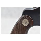 325R. Excellent! Colt – Mod. Python – 357 Mag. Cal. Double Action Revolver – w/4” Vent-Rib Barrel w/Ramp Front & Adj. Rear Sights – Blued Finish – w/Factory Checkered Wood Grips w/Colt Medallion – Gun Appears Test Fired Only! w/Factory Wood Grain Box w/Foam Inserts, Warranty Card & “Handling The Gun” Manuals – Mfg. 1974