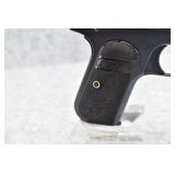 328R. Excellent! Colt – Mod. 1908 Pocket Hammerless – 380 ACP Cal. Semi-Auto Pistol – w/3 ¾” Barrel w/Round Blade Front & Notch Rear Sights – Strong Blued Finish! – w/Factory Checkered Hard Rubber Grips w/Rampant Colt – w/Factory Two-Tone Magazine – Mfg. 1923 – Excellent Example