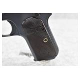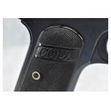 327R. Colt – Mod. 1903 Pocket Hammerless – 32 ACP Cal. Semi-Auto Pistol – w/3 ¾” Barrel w/Round Blade Front & Notch Rear Sights – Strong Blued Finish! – w/Factory Checkered Hard Rubber Grips w/Rampant Colt – w/Factory Two-Tone Magazine – Mfg. 1919 – Excellent Example