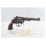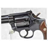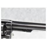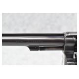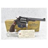 680R. Smith & Wesson – Mod. K-22 Masterpiece – 22LR Cal. Double Action Revolver – w/6” Full Width Serrated Tip Rib Barrel w/Partridge Blade Front & Adj. Rear Notch Sights – Blued Finish – w/S&W Medallion Diamond Checkered Wood Grips That # to the Gun! – w/Hand Ejector