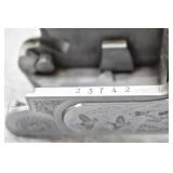 309R. Excellent! Factory Special Order Marlin – Mod. 97 Deluxe Takedown – 22 Cal. Lever Action Rifle – Serial No. A2833 – Gun is Fit with a Factory Special Order 24” Octagon to Round Barrel with a Lyman Beech Combo Front and Adjustable Rear Buckhorn Sights – Rifle Remains in Outstanding Condition with an Excellent Amount of Original Bluing Remaining on the Barrel and Magazine Tube – The Receiver Retains Vivid, Deep Case Colors on the Sides and Top, While the Case Color on the Under-Side of the Receiver has Faded Back as a Result of Carrying Wear – The Lever Also Retains Strong Traces of Original Case Color! – This Gun is Stocked with a Factory Special Order Checkered S Pistol Grip Wood Butt Stock and Matching Checkered Wood Forearm with a Factory Special Order Shotgun Butt Plate – Gun has a Factory Special Order ¾ Length Tubular Magazine – All Together, this is a 6 Option Gun! (1) Deluxe Checkering, (2) S Pistol Grip, (3) Octagon to Round Barrel, (4) ¾ Length Magazine Tube, (5) Beech Combo Front Sight, and (6) Shotgun Butt – With the Condition this Rifle is in and the Variety of Options it Bares, This would be an Impressive Focal Point in Anyone’s Marlin Collection!!