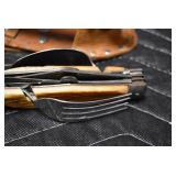 309R.    Excellent! Factory Special Order Marlin – Mod. 97 Deluxe Takedown – 22 Cal. Lever Action Rifle – Serial No. A2833 – Gun is Fit with a Factory Special Order 24” Octagon to Round Barrel with a Lyman Beech Combo Front and Adjustable Rear Buckhorn Sights – Rifle Remains in Outstanding Condition with an Excellent Amount of Original Bluing Remaining on the Barrel and Magazine Tube – The Receiver Retains Vivid, Deep Case Colors on the Sides and Top, While the Case Color on the Under-Side of the Receiver has Faded Back as a Result of Carrying Wear – The Lever Also Retains Strong Traces of Original Case Color! – This Gun is Stocked with a Factory Special Order Checkered S Pistol Grip Wood Butt Stock and Matching Checkered Wood Forearm with a Factory Special Order Shotgun Butt Plate – Gun has a Factory Special Order ¾ Length Tubular Magazine – All Together, this is a 6 Option Gun! (1) Deluxe Checkering, (2) S Pistol Grip, (3) Octagon to Round Barrel, (4) ¾ Length Magazine Tube, (5) Beech Combo Front Sight, and (6) Shotgun Butt – With the Condition this Rifle is in and the Variety of Options it Bares, This would be an Impressive Focal Point in Anyone’s Marlin Collection!!