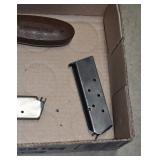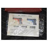 295R.    Colt – Mod. 1911 A1 U.S. Army – 45 Auto Cal. Semi-Auto Pistol – w/5” Barrel w/Blade Front and Rear Notch Sights – Parkerized Finish – w/Factory Checkered Brown Plastic Grips – w/1 Factory Detachable Magazine – w/2-Piece Contract Box – Manufactured 1943
