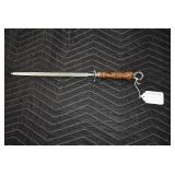 725R.    Ruger – Mod. Mark II Target – 22LR Cal. Semi-Auto Pistol – w/10” Heavy Target Barrel w/Factory Blade Front & Notch Rear Adj. Target Sights – Stainless Finish – w/Smooth Wood Grips w/Silver Star Inlaid on Right Side Grip – w/Factory Detachable Magazine