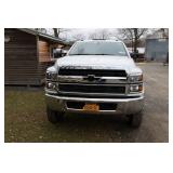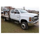 Items include J2022 International GM515 crew-cab flatbed truck; 2003 Rolls Rite 35' gooseneck equipment trailer; 9' Storm Guard snow plow with Fisher Minute Mount 2 system; Fisher Minute Mount 2 snow plow & 7.5' yellow snowplow blade. Items are located in Rhinebeck, NY. |
