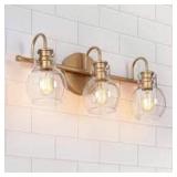 LNC Robb Modern 3-Light Gold Bathroom Vanity Light Interior Powder Room Lighting with Clear Globe Shades