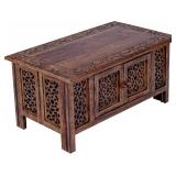 (23) Hand-Carved Wooden Coffee Table – 36” x 18” Rectangular Mango Wood Center Table with Storage, Natural Burnt Finish, Living Room & Accent Table