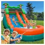 - Can be used in all seasons: inflatable backyard water slide whether it's a hot summer day or a cold winter day, the children's inflatable water park can be used both indoors and outdoors. On summer afternoons, in the shade, the surrounding mesh walls are cool and not dull. In the warm winter indoors, inflate the castle, put some ocean balls in the pool, and the kids excitedly jump, climb, throw balls and burn off the excess endless energy.