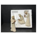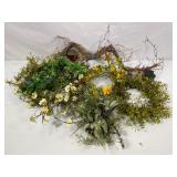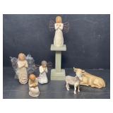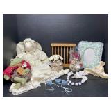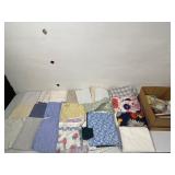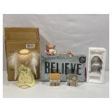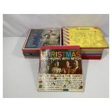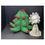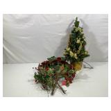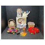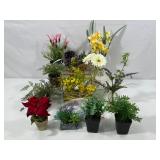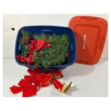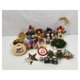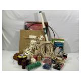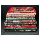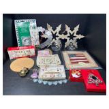 A large, practical household catalog with a heavy emphasis on holiday décor and kitchen-ready usefulness, paired with crafts, textiles, books and general home contents. The Christmas selection is extensive, featuring décor lots and miniatures, ornaments, artificial greenery, wreaths and garlands, light sets, vintage-style figures, snowmen and Santa themes, storage totes of seasonal items, and standout pieces such as Willow Tree nativity and angel figures, lighted stable, and decorative trees and tabletop accents.