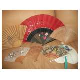 TABLE, COLL. ANTIQUE MINI WICKER FURNITURE, ANTIQUE GERMAN DOLLS, FAN
