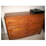 PC. OFFICE DESK, 4 POST QUEEN BED, 1930'S MAPLE CHEST, ANTIQUE DROP LEAF
