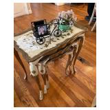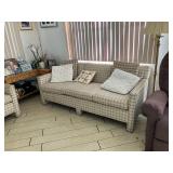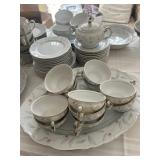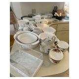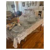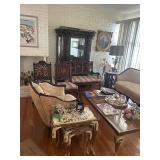House is loaded! Diggable garage & basement! Sterling, lots of Judaica including art & books, Lenox "Autumn" , Mikasa and other sets of china, Capodimonte, stemware, toys, games, barware, clothes, bags, hats & scarves, carved loveseat with matching chairs, brass & glass coffee table, marble top console & mirrors, cheval mirror, bedroom furniture, like new extendable kitchen table & chairs, burled dining room table with 8 chairs, carved curio, side chairs, modern plaid sofa & loveseat, kitware, linens & lots more! |