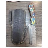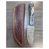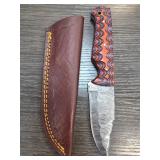Damascus Steel Knife with Custom Sheath |