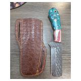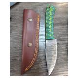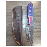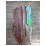 Custom Knife with Colored Handle and Leather Sheat |