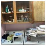 - Lot #64 - Laundry Room Cabinet & Utility Lot – Towels, Glass Jars, Organizers & Household Items