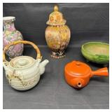 - Lot #13 - Asian Pottery & Decorative Ceramics Lot – Japanese Teapots, Hand-Painted Vase, Lidded Jar & Studio Bowl