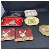- Lot #14 - Vintage Decorative Serving Trays Lot – Elite Trays England, Floral, Chef Art, Christmas & Asian-Inspired Designs
