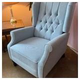 - Lot #20 - Noble House Tufted Wingback Recliner Chair – Light Blue Upholstery w/ Nailhead Trim
