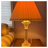 - Lot #21 - Classic Glass & Brass Table Lamp with Pleated Shade – 28” Tall
