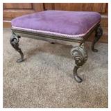 - Lot #22 - Antique-Style Upholstered Footstool with Ornate Claw Legs – Purple Cushion