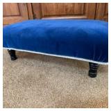 - Lot #23 - Upholstered Footstool with Blue Velvet Cushion & Tassel Accents