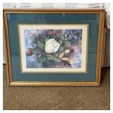 - Lot #78 - Framed Magnolia Bloom Floral Art Print by Janice Sander – 24” x 20” Ornate Wood Frame