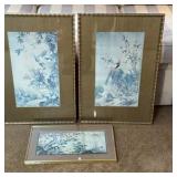 - Lot #81 - Framed Asian Bird & Landscape Art Prints – Set of 3 | Large Gold Frames | Oriental Style Wall Art