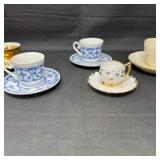- Lot #97 - Vintage Porcelain Teacups & Saucers Lot – European Makers, Blue & Gold Decor