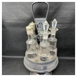 - Lot #93 - Antique MF Co. Patented Cruet Set w/ Cut Glass Bottles & Ornate Metal Stand – Model 1028