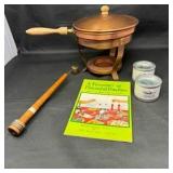 - Lot #94 - Vintage Copper Fondue Set w/ Stand, Lid, Utensils & Recipe Book – Classic Mid-Century Entertaining