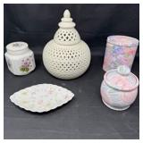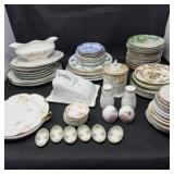 - Lot #99 - Antique & Vintage Porcelain Dishware Lot – Plates, Butter Dish, Gravy Boat, Salt & Pepper, Floral China