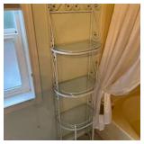 - Lot #196 - 65” Black Plastic Storage Shelf w/ Kitchenware, Ramekins, Glass Bowls, Baskets & Baking Supplies