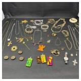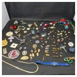 - Lot #158 - Vintage Pins, Watches & Jewelry Lot – Military, Service Awards, Religious, Enamel Pins & Necklaces