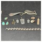 - Lot #182 - Sterling Silver Jewelry Lot (.925) – Turquoise, Pendants, Bracelet, Earrings & Chain – 131.96 Grams