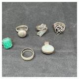 - Lot #185 - Sterling Silver Jewelry Lot – Rings & Pendant w/ Green Stone & Abalone Inlay (Wearable & Artisan Styles)