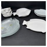 - Lot #200 - Fish-Shaped Serving Dish Lot – White Ceramic & Arcoroc Glass Platters, Bowls & Plates