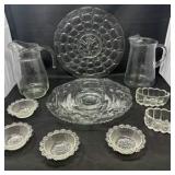 - Lot #33 - Vintage Glassware Lot with Pitchers, Plates, and Bowls