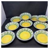 - Lot #39 - Set of 10 Trisa Hand-Painted Pasta / Soup Bowls – Yellow & Green Italian-Style Ceramic Bowls