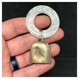 - Lot #211 - Sterling Silver Bell Charm with Mother-of-Pearl Ring & Small Sterling Spoon Lot
