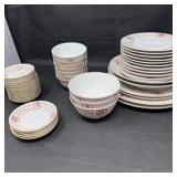- Lot #213 - Vintage Made in Taiwan Porcelain Dinnerware Set – Red Longevity Pattern w/ Gold Trim